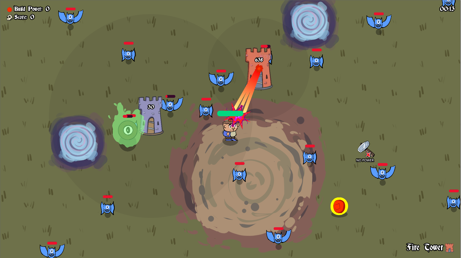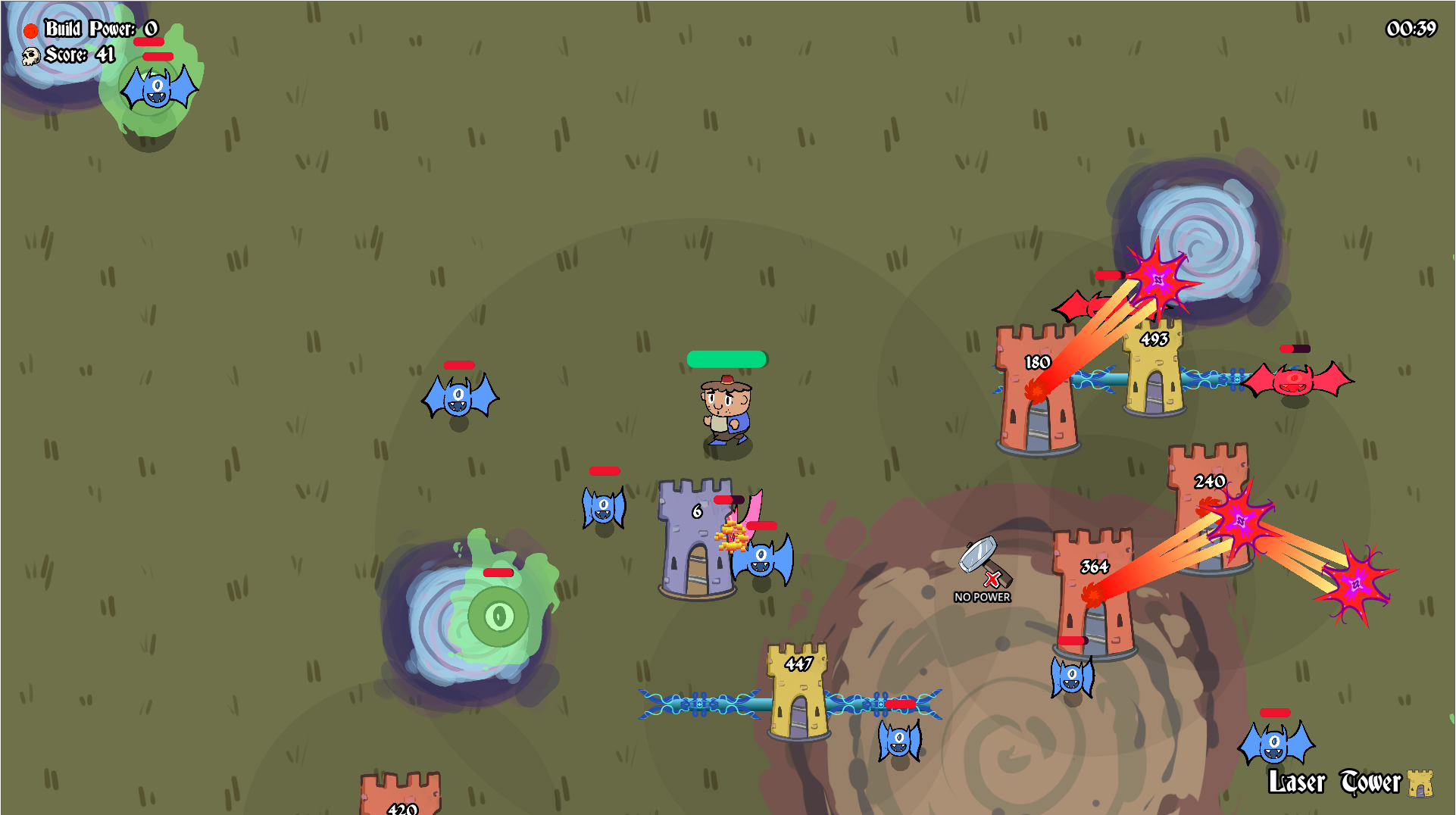 Project Tower is a "Bullet Heaven" crossed with a Tower Defense, presented in an arcade-length experience. You control a player that you must keep alive, while using your cursor to place towers that will slay the enemy hoard!